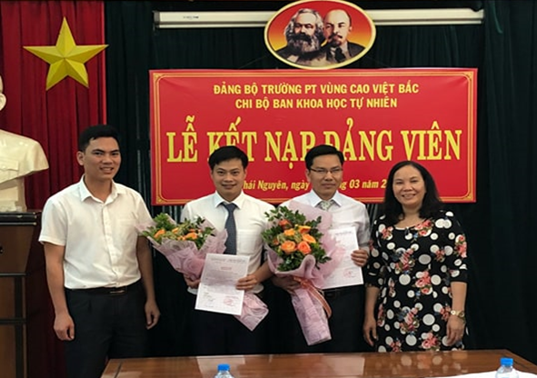 Ngày 05/03/2018, được sự đồng ý của Đảng ủy Trường Phổ thông Vùng cao Việt Bắc, Chi bộ Ban Khoa học tự nhiên tổ chức lễ kết nạp Đảng viên mới cho hai quần chúng ưu tú Lê Văn Kiên và Lương Văn Luyện theo quyết định số 610 - NQ/TU ngày 30/1/2018 của Thành ủy Thái Nguyên.