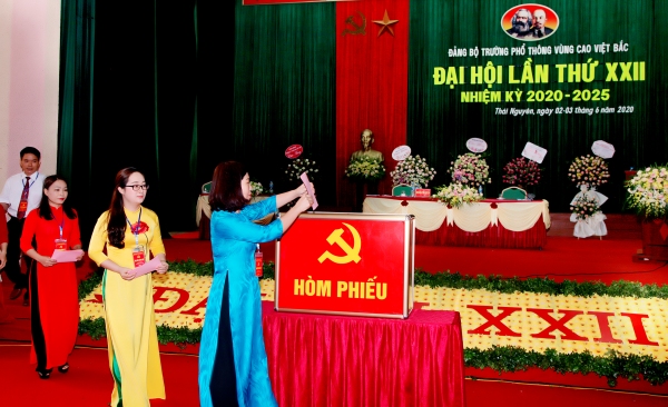 Phiên chính thức Đại hội Đảng bộ Trường PT Vùng cao Việt Bắc lần thứ XXII vào sáng ngày 03/06/2020 đã thông qua Dự thảo Báo cáo tổng kết nhiệm kỳ 2015- 2020 và Phương hướng, mục tiêu, nhiệm vụ, giải pháp nhiệm kỳ 2020 - 2025; Thảo luận nhiều vấn đề quan trọng liên quan đến sự phát triển của Nhà trường; Báo cáo đóng góp ý kiến vào Dự thảo Văn kiện Đại hội toàn quôc lần thứ XIII của Đảng và Dự thảo văn kiện Đại hội đại biểu Đảng bộ Thành phố Thái Nguyên lần thứ XVIII nhiệm kỳ 2020-2025; Đại hội đã tiến hành bầu Ban Chấp hành Đảng bộ khóa XXII và bầu đại biểu dự Đại hội Đảng bộ Thành phố Thái Nguyên lần thứ XVIII gồm 01 đại biểu chính thức và 01 đại biểu dự khuyết.