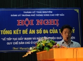 Chiều 9/11/2010, Ban chỉ đạo về thực hiện quy chế dân chủ trường PT Vùng cao Việt Bắc đã tổ chức Hội nghị tổng kết đề án số 04 – ĐA/TU ngày 21/09/2006 của Tỉnh uỷ “Về tiếp tục đẩy mạnh và nâng cao hiệu quả thực hiện quy chế dân chủ ở cơ sở giai đoạn 2006 - 2010”. Tới dự hội nghị có các đồng chí lãnh đạo các Ban xây dựng Đảng của Tỉnh ủy và Thành ủy.