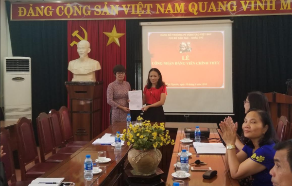 Chiều ngày 10 tháng 08 năm 2018 vừa qua, chi bộ Đào tạo - Khảo thí đã tổ chức lễ công nhận đảng viên chính thức, do đồng chí Bùi Thị Thu Thủy - Bí thư Chi bộ chủ trì; dự và chỉ đạo có đồng chí Tô Thị Thoa - Phó Bí thư Đảng ủy, Phó hiệu trưởng nhà trường cùng toàn thể đảng viên Chi bộ Đào tạo - Khảo thí tham dự.