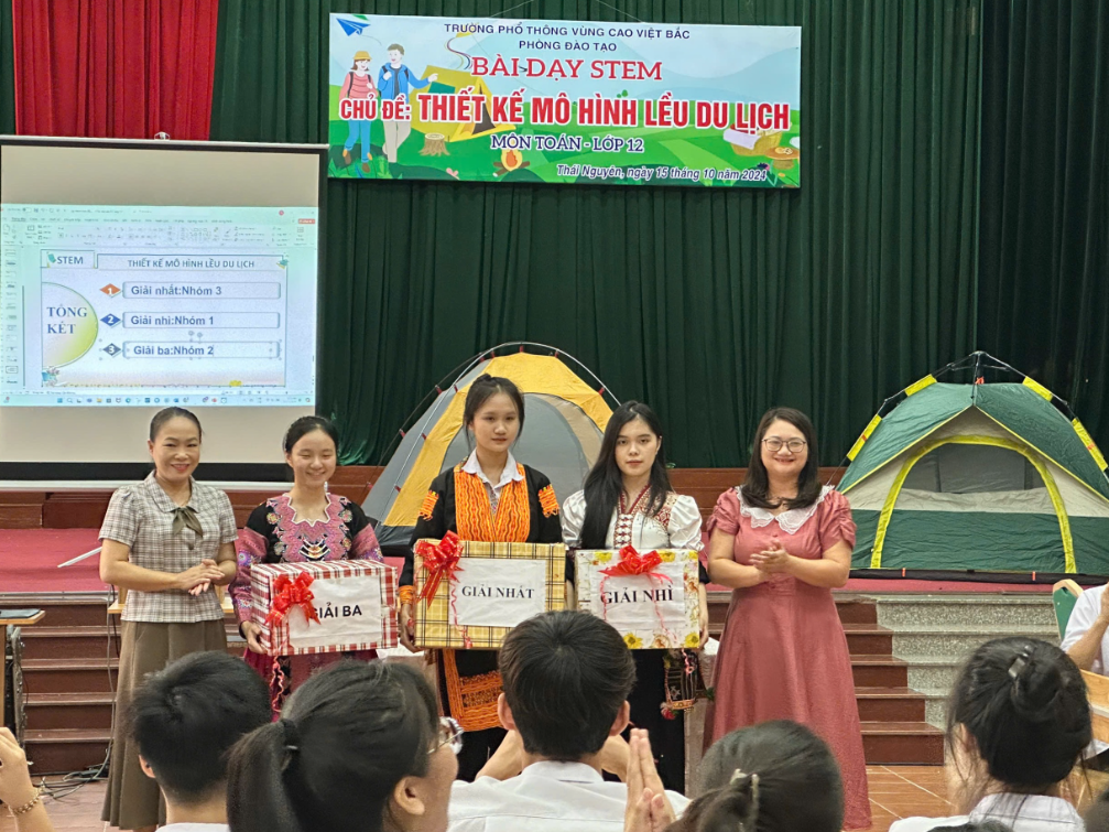 Các nhóm học sinh đã tích cực hoàn thành sản phẩm và báo cáo kết quả thiết kế mô hình Lều du lịch của mình. Mỗi nhóm thể hiện những phong cách thiết kế riêng biệt, đồng thời tích hợp yếu tố văn hóa vào sản phẩm: