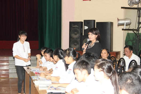 Sau tiết giảng văn là tiết tiếng anh của thầy giáo Tô Đức Công với chủ đề“School talk”, ai cũng nghĩ rằng dạy tiếng Anh sẽ rất khó để mọi người hiểu về một ngôn ngữ khác, nhưng điều này đã được nhóm giáo viên tiếng anh biến cái khó hiểu thành dễ hiểu thông qua các hoạt động mà học sinh chủ động phát huy, vốn ngôn ngữ tiếng Anh được thể hiện qua các kỹ năng nghe, hiểu, nói, thuyết trình, học sinh chủ động nhập vai, chủ động thiết kế bài học thành tình huống thực tiễn về cách thực hiện trang phục học đường, vấn đề tự học hiệu quả và các hoạt động sinh hoạt tại ký túc xá.