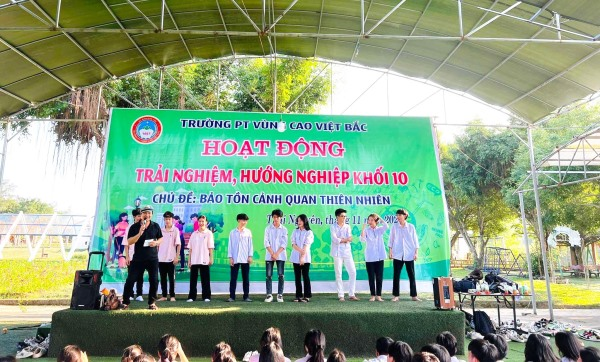 Dưới sự chỉ đạo của nhà trường, các thầy cô giáo bộ môn Hoạt động trải nghiệm đã tổ chức chương trình Hoạt động trải nghiệm, hướng nghiệp lớp 10 với chủ đề “Bảo tồn cảnh quan thiên nhiên” tại Khu trải nghiệm giáo dục WONDERLAND và Không gian văn hóa trà Tân Cương - Thành phố Thái Nguyên.