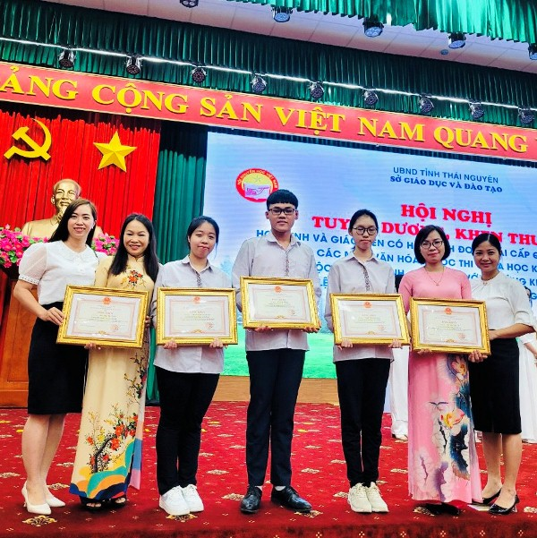 Tại buổi lễ tuyên dương, trường PT Vùng cao Việt Bắc vinh dự có 03 học sinh và 02 giáo viên đã được nhận Bằng khen của UBND tỉnh Thái Nguyên, đó là các em: