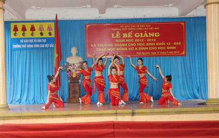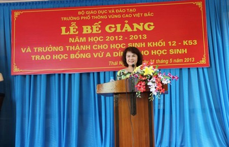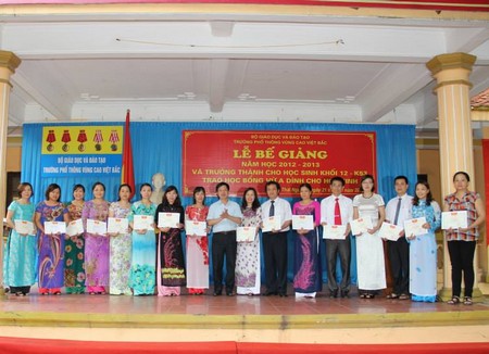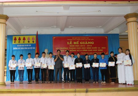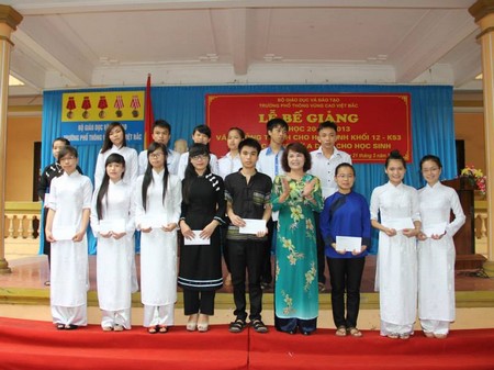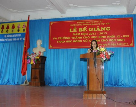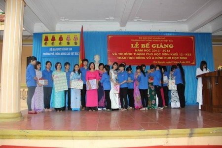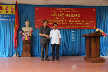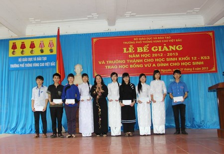 Phần thứ hai của chương trình là lễ trao học bổng Vừ A Dính cho các học sinh có thành tích xuất sắc trong học tập và rèn luyện. Năm học 2012- 2013 quỹ học bổng Vừ A Dính đã trao 80 xuất học bổng cho học sinh trường PT VCVB. Phát biểu với thầy và trò nhà trường Ông Vũ Quang Vinh - Giám đốc quỹ học bổng Vừ A Dính đã biểu dương thành tích của học sinh nhà trường, căn dặn các em nỗ lực rèn luyện xứng đáng với sự quan tâm, tin yêu của Đảng và nhà nước,vì sự phát triển miền núi và các dân tộc thân yêu.