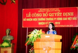 Đ/c Ngô Mạnh Hải - Phó vụ trưởng vụ Tổ chức Cán bộ - Bộ Giáo dục và Đào tạo đã trao Quyết định bổ nhiệm Th.s Lục Thúy Hằng giữ chức Hiệu trưởng Trường PT Vùng cao Việt Bắc và mong rằng Đ/c Lục Thúy Hằng sẽ kế tục xuất sắc những thành tựu trường PT Vùng cao Việt Bắc đã đạt được.