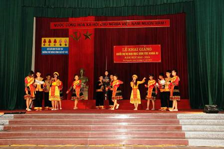 Mở đầu buổi lễ là bài diễn văn phát biểu của đồng chí hiệu trưởng Đinh Thị Kim Phương. Tiếp sau đó, Đ/c Phạm Quốc Quân đã đại diện cho các đồng chí giáo viên có bài phát biểu cảm tưởng. Đại diện cho các em học sinh, em Vi Công Quyền - lớp DBD1 - Dân tộc Tày quê ở Tuyên Quang cũng có bài phát biểu cảm nghĩ khi được học tập tại nhà trường.