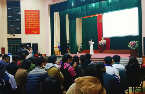 Vào tối ngày 9.1.2018 vừa qua, tại nhà Đa năng trường phổ thông Vùng cao Việt Bắc, tổ Tư vấn HSSV đã tổ chức chương trình ngoại khóa kỷ niệm 68 năm ngày truyền thống học sinh, sinh viên và Hội Sinh viên Việt Nam (9.1.1950 - 9.1.2018) cho toàn thể học sinh khối DBĐH khóa 15.
