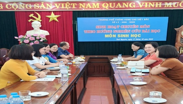 Ngày 17 tháng 10 năm 2022, nhóm Sinh học trường PT Vùng cao Việt Bắc đã tổ chức sinh hoạt chuyên môn theo nghiên cứu bài học với sự tham gia của đồng chí Hoàng Việt Cường - Phó phòng Giáo dục trung học Sở Giáo dục và Đào tạo Thái Nguyên, đồng chí Bùi Thị Thu Thuỷ - Trưởng phòng Đào tạo, đồng chí Đoàn Minh Đức - Tổ trưởng tổ Lý Hóa Sinh và toàn thể giáo viên nhóm Sinh học của nhà trường.