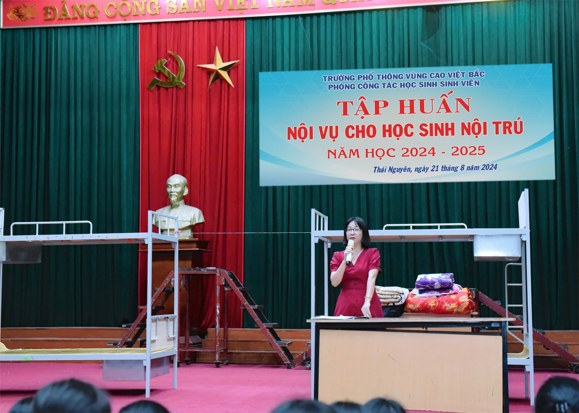Tối ngày 21/08/2024, Phòng Công tác Học sinh sinh viên trường Phổ thông Vùng cao Việt Bắc đã tổ chức chương trình “Tập huấn nội vụ ký túc xá cho học sinh nội trú năm học 2024 - 2025” tại nhà Đa năng với đối tượng học sinh khối 11,12.
