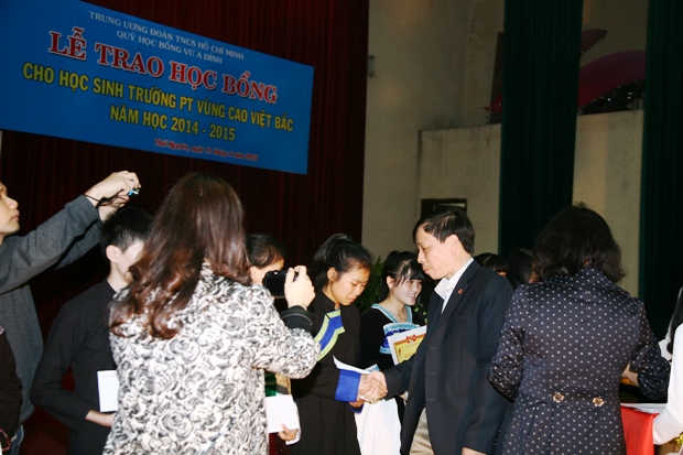 Chi hội báo Thiếu niên Tiền phong và Quỹ Học bổng Vừ A Dính về trường PT Vùng cao Việt Bắc đúng dịp trường vừa tổ chức Kỷ niệm 55 năm ngày Bác Hồ về thăm và đón nhận danh hiệu Anh hùng Lao động. Không khí náo nức ấy như lan tỏa khắp nơi, khuôn viên trường khang trang, sạch đẹp, gương mặt thầy cô giáo và các bạn học sinh rạng rỡ, tươi vui. Và hôm nay trường còn náo nức hơn khi được đón Ban lãnh đạo Quỹ Học bổng Vừ A Dính cùng các anh chị phóng viên, biên tập viên thuộc chi hội báo Thiếu niên Tiền phong về thăm và tặng học bổng cho 40 bạn học sinh vượt khó, chăm ngoan, đạt nhiều thành tích cao trong học tập.