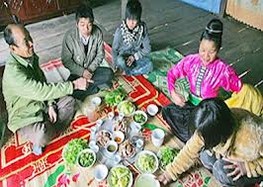 Cái Tết dường như ấm cúng hơn khi gia đình ngồi bên nhau để cùng thưởng thức những miếng bánh chưng ngon.