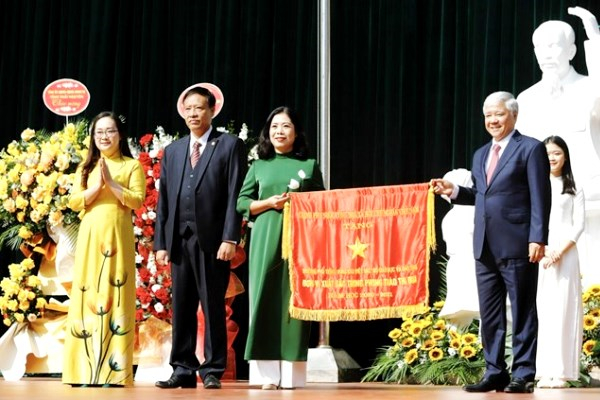 Thay mặt lãnh đạo Đảng, Nhà nước, Bí thư Trung ương Đảng, Chủ tịch UBTƯ MTTQ Việt Nam Đỗ Văn Chiến trao tặng Cờ thi đua của Chính phủ cho Trường Phổ thông Vùng cao Việt Bắc.