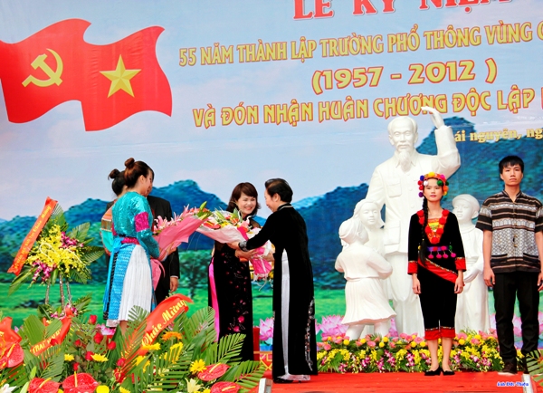 Nhân dịp này, thay mặt lãnh đạo Đảng, Nhà nước, Phó Chủ tịch nước Nguyễn Thị Doan đã trao Huân chương Độc lập hạng Nhì cho Trường PT Vùng cao Việt Bắc và Huân chương Lao động hạng Ba cho đồng chí Đinh Thị Kim Phương, Bí thư Đảng ủy, Hiệu trưởng Nhà trường. Ngoài ra, hai tập thể và 3 cá nhân được tặng bằng khen của Thủ tướng Chính phủ.