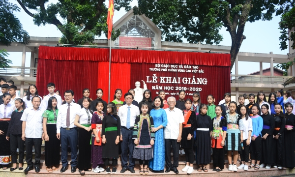 Năm học 2019 - 2020 của Trường PT Vùng cao Việt Bắc chính thức được bắt đầu sau bài phát biểu chúc mừng nhà trường và hồi trống khai trường rộn rã của đồng chí Phan Văn Hùng - Thứ trưởng, Phó Chủ nhiệm Ủy ban Dân tộc.
