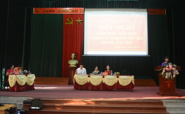 Thực hiện nhiệm vụ năm học 2019 - 2020; thực hiện Công văn số 251/CĐN-CSPL, ngày 04 tháng 9 năm 2019 của CĐGD Việt Nam về việc tổ chức Hội nghị Cán bộ Công chức - Viên chức; Sáng ngày 14 tháng 9 năm 2019, trường PT Vùng cao Việt Bắc đã long trọng tổ chức Hội nghị công chức - viên chức năm học 2019 - 2020. Hội nghị có sự tham gia của các đồng chí trong Đảng ủy, Ban Giám hiệu, Công đoàn, Đoàn thanh niên cùng toàn thể cán bộ, công chức, viên chức, người lao động trong nhà trường.