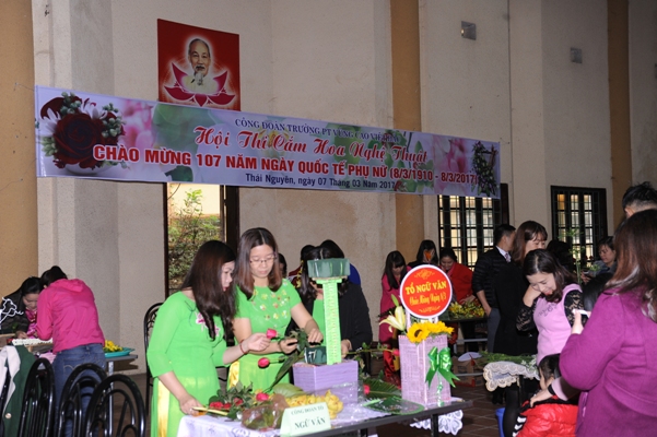 Hòa chung không khí nhộn nhịp đó, công đoàn trường PT Vùng cao Việt Bắc tổ chức hội thi “CẮM HOA NGHỆ THUẬT” chào mừng 107 năm ngày Quốc tế Phụ nữ.