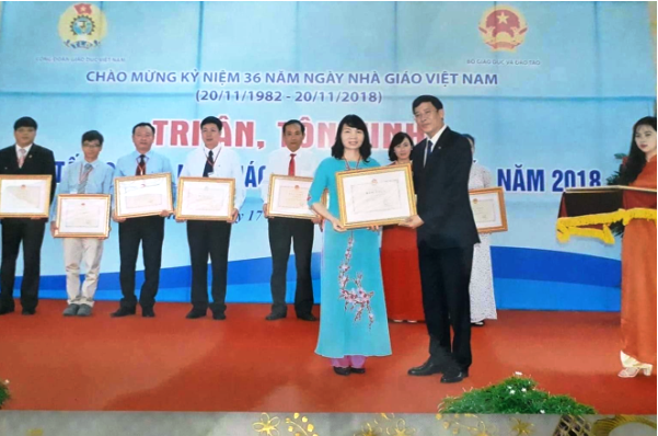 Tại buổi lễ, Thứ trưởng Bộ GD&ĐT Nguyễn Hữu Độ, Chủ tịch Công đoàn Giáo dục Việt Nam Vũ Minh Đức đã trao bằng khen của Bộ trưởng Bộ GD&ĐT cho 183 nhà giáo tiêu biểu toàn quốc năm 2018.