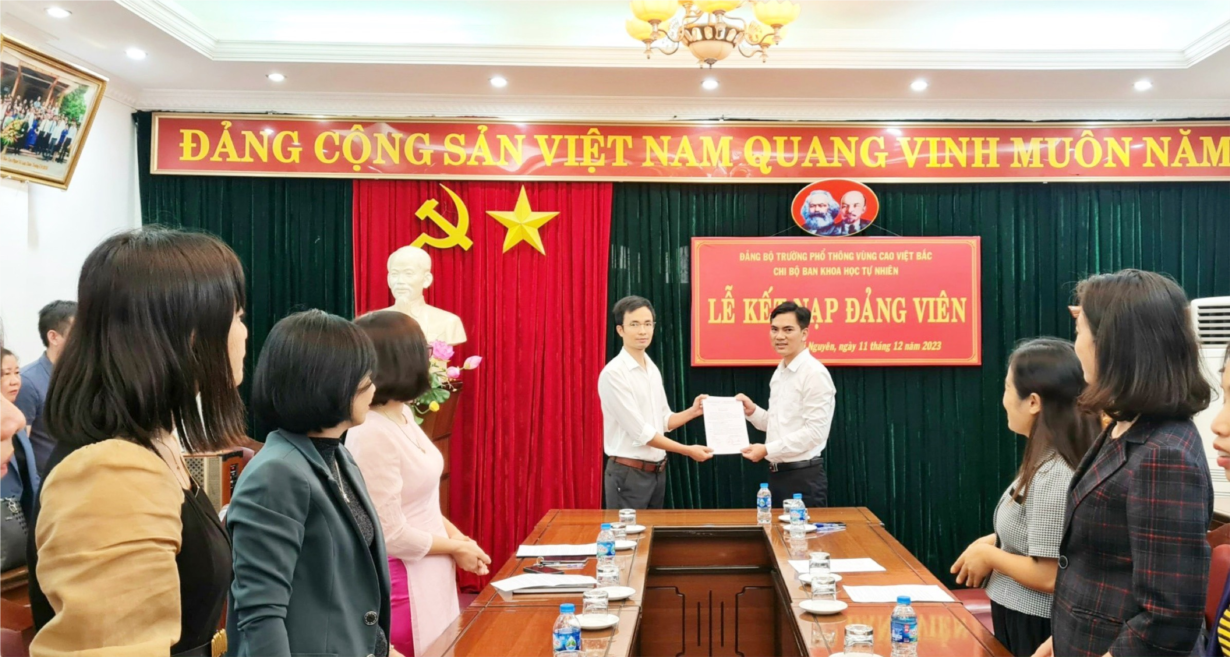 Lễ kết nạp diễn ra trong không khí trang nghiêm, theo đúng trình tự, thủ tục Điều lệ Đảng. Tại buổi lễ, đồng chí Đoàn Minh Đức, Bí thư chi bộ Ban Khoa học Tự nhiên đã trao quyết định kết nạp, phân công nhiệm vụ cho đảng viên mới, đồng thời phân công các đồng chí đảng viên chính thức trong chi bộ tiếp tục giúp đỡ hai đồng chí đảng viên mới trong thời gian 12 tháng dự bị.