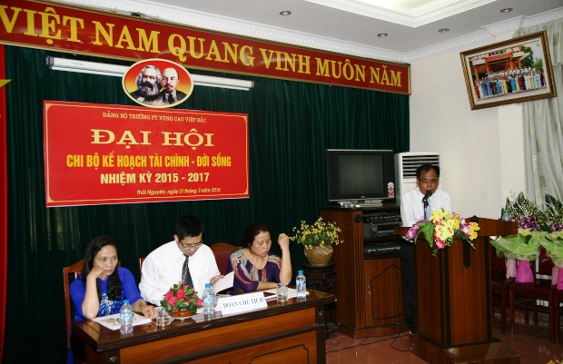Thực hiện Chỉ thị số 36-CT/TW ngày 30/5/2014 của Bộ Chính trị về Đại hội Đảng bộ các cấp tiến tới Đại hội đại biểu toàn quốc lần thứ XII của Đảng; Kế hoạch số 77-KH/TU ngày 20/10/2014 của Ban chấp hành Đảng bộ thành phố về tổ chức các Đại hội chi bộ, Đảng bộ cơ sở tiến tới Đại hội đại biểu thành phố Thái Nguyên lần thứ XVII; Các văn bản hướng dẫn của các ban Đảng Trung ương và các ban Đảng của Tỉnh uỷ, Thành uỷ; Kế hoạch số 86-KH/ĐU ngày 02/12/2014 của Đảng uỷ trường PT Vùng cao Việt Bắc, ngày 31 tháng 03 năm 2015 Chi bộ Kế hoạch Tài chính - Đời sống tổ chức Đại hội chi bộ nhằm đánh giá, kiểm điểm công tác lãnh đạo của chi bộ trong nhiệm kỳ 2012 - 2015 và đề ra mục tiêu phương hướng, nhiệm vụ nhiệm kỳ 2015 - 2017.