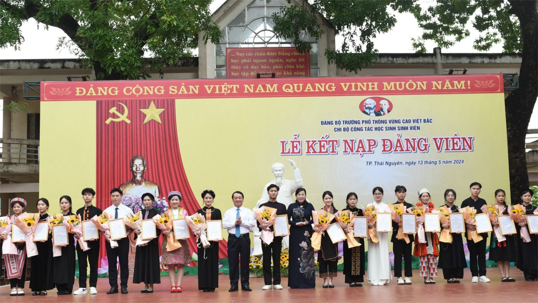 Nhân kỷ niệm 134 năm Ngày sinh Chủ tịch Hồ Chí Minh (19/5/1890 - 19/5/2024), sáng ngày 13 tháng 5 năm 2024, Chi bộ Công tác học sinh sinh viên, thuộc Đảng bộ Trường Phổ thông Vùng cao Việt Bắc đã trang trọng tổ chức Lễ kết nạp Đảng viên cho các quần chúng ưu tú là giáo viên và học sinh nhà trường.