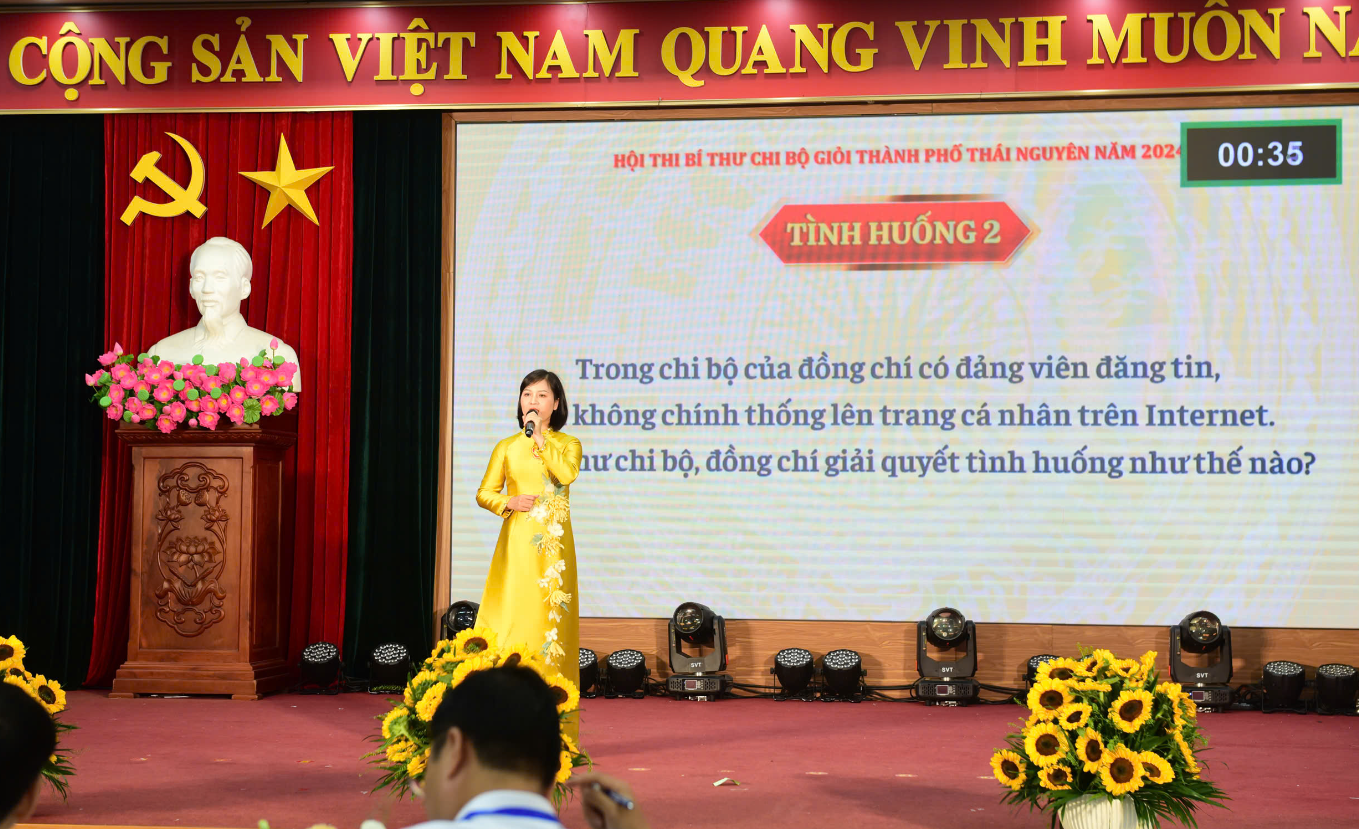 Vòng chung kết Hội thi Bí thư Chi bộ giỏi thành phố Thái Nguyên năm 2024 đã được tổ chức chu đáo, công phu với chất lượng chuyên môn cao. Trước sự chứng kiến của đông đảo cán bộ, đảng viên và quần chúng nhân dân thành phố Thái Nguyên, 19 thí sinh đã trải qua 3 phần thi: Chào hỏi, Thuyết trình và Xử lí tình huống. Nội dung các phần thi chủ yếu tập trung vào những vấn đề về nhận thức quan điểm, đường lối, chính sách của Đảng; Nghị quyết Đại hội Đảng, Điều lệ, Quy định, Chỉ thị của Đảng; các biện pháp xây dựng Đảng bộ, chi bộ trong sạch, vững mạnh; công tác chính trị tư tưởng, giáo dục truyền thống cách mạng cho cán bộ, đảng viên; tăng cường, củng cố xây dựng tổ chức cơ sở đảng và nâng cao chất lượng đội ngũ cán bộ, đảng viên ở từng đơn vị. Đồng chí Lưu Thị Thu Hoài đã đoạt giải Khuyến khích tại Hội thi.