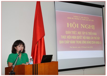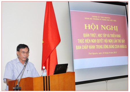 Ngày 19/8/2013, Đảng ủy trường PT Vùng cao Việt Bắc tổ chức “Hội nghị học tập, quán triệt và triển khai thực hiện Nghị quyết Trung ương 7 (Khóa XI)". Tham dự Hội nghị có NGƯT Đinh Thị Kim Phương - Bí thư Đảng ủy - Hiệu trưởng nhà trường; các đồng chí trong Đảng ủy; Trưởng, Phó các phòng; các đồng chí cán bộ, giáo viên trong Hội đồng Giáo dục nhà trường.