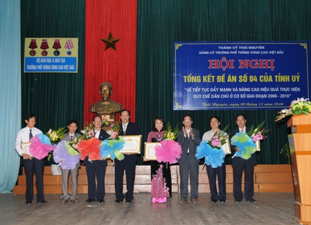 Chiều 9/11/2010, Ban chỉ đạo về thực hiện quy chế dân chủ trường PT Vùng cao Việt Bắc đã tổ chức Hội nghị tổng kết đề án số 04 – ĐA/TU ngày 21/09/2006 của Tỉnh uỷ “Về tiếp tục đẩy mạnh và nâng cao hiệu quả thực hiện quy chế dân chủ ở cơ sở giai đoạn 2006 - 2010”. Tới dự hội nghị có các đồng chí lãnh đạo các Ban xây dựng Đảng của Tỉnh ủy và Thành ủy.