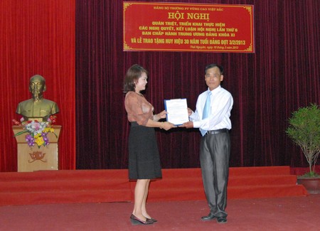 Chiều ngày 19/3/2013 Đảng bộ trường PT Vùng cao Việt Bắc đã trang trọng tổ chức Lễ trao Huy hiệu 30 năm tuổi Đảng cho đảng viên Phạm Hồng Chuyên đợt 03/02/2013. Đến dự buổi Lễ có đồng chí Đinh Thị Kim Phương - Bí thư Đảng ủy - Hiệu trưởng, các đồng chí trong Đảng ủy, Ban Giám hiệu, toàn thể đảng viên, cán bộ, giáo viên, công nhân viên nhà trường.