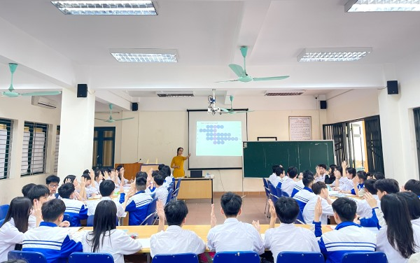 Đồng chí Lê Thị Hà Phương thực hiện tiết giảng môn Toán bài 22: “Ba đường conic” tại lớp 10A5. Mở đầu tiết học là phần khởi động thú vị cùng trò chơi “Ô chữ bí mật”. Hoạt động này vừa giúp các em học sinh nhớ lại kiến thức ở các bài trước đó, vừa gợi mở chủ đề của bài mới, đồng thời tạo không khí giờ học sôi nổi, cuốn hút. Với sự hướng dẫn linh hoạt và vận dụng các phương pháp dạy học tích cực của giáo viên, các em học sinh đã thảo luận sôi nổi, tích cực tham gia hoạt động nhóm để cùng thực hiện các nhiệm vụ học tập.