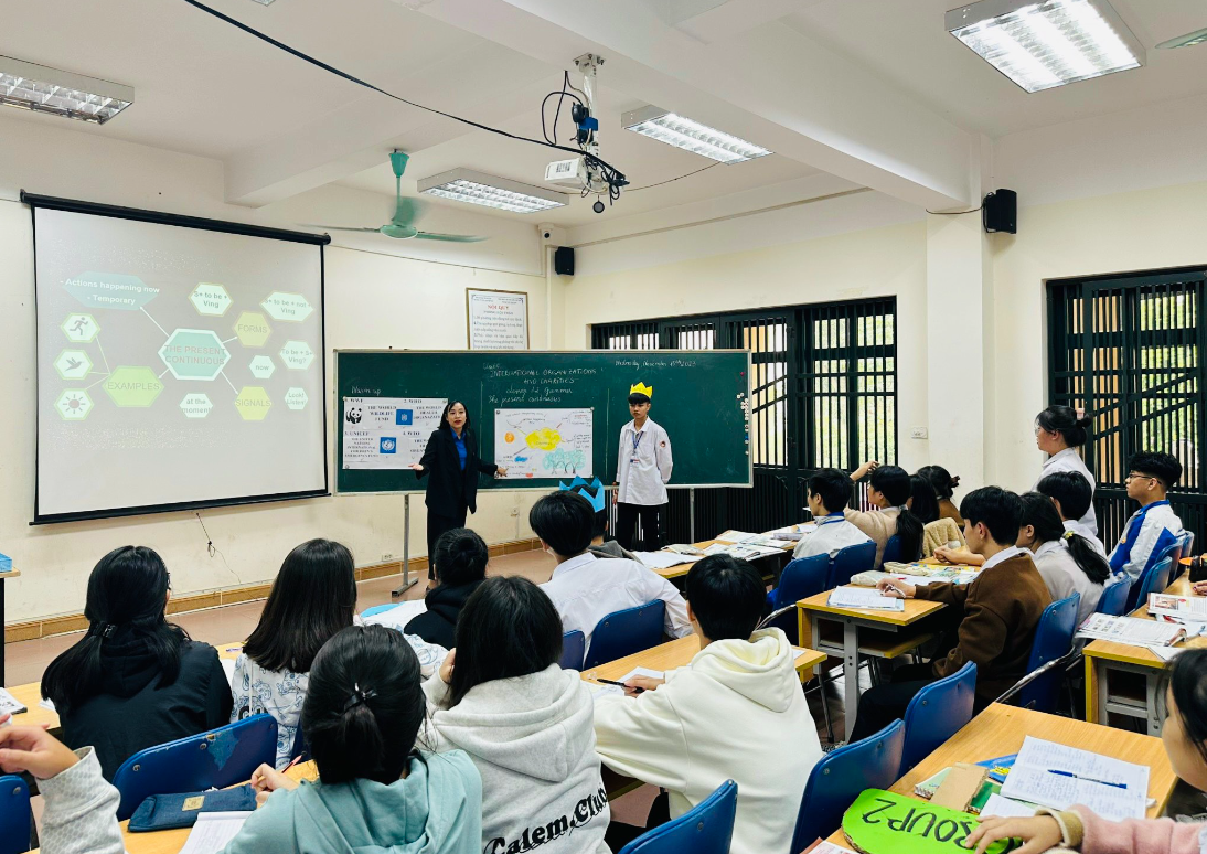 Môn Tiếng Anh là tiết dạy của đồng chí Nguyễn Thị Huyền Phương với bài: “Unit 4: Internnational organizations and charities. Lesson 1.2 Grammar” tại lớp 10A10.