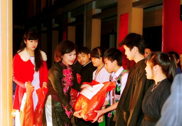 Một trong những hoạt động ý nghĩa tiếp theo đó là tổng kết và trao tặng những món quà ấm áp từ chương trình “Xuân ấm yêu thương” của đoàn trường PT Vùng cao Việt Bắc tới gần 200 em học sinh trong trường có hoàn cảnh khó khăn.