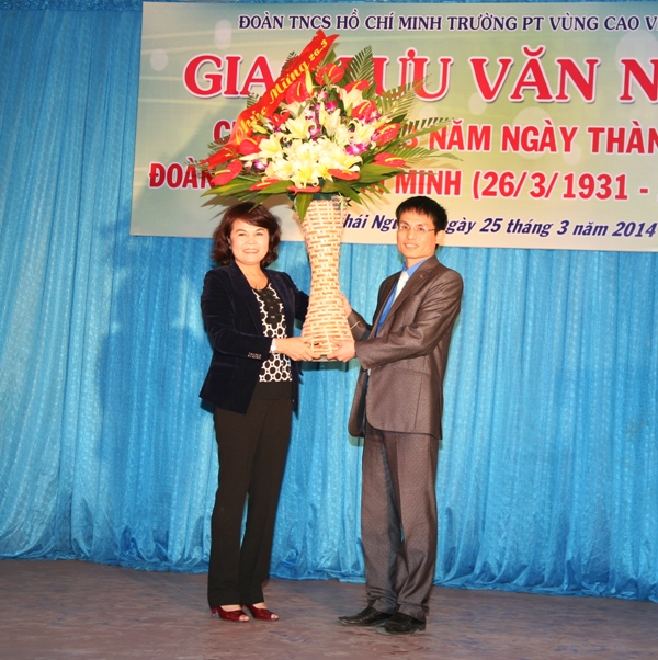 Tại buổi giao lưu, tuổi trẻ nhà trường đã vui mừng nhận những bó hoa tươi thắm của Đảng ủy, BGH, Chi bộ Đào tạo, chúc mừng và ghi nhận vai trò và những đóng góp của Đoàn thanh niên trong các hoạt động của nhà trường.