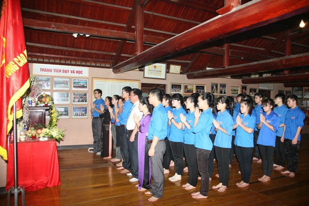 Từ 6h30’ sáng, lãnh đạo nhà trường, các đồng chí trong BCH đoàn trường và toàn bộ bí thư chi đoàn trong trang phục chỉnh tề đã có mặt tại sân trường để tham gia lễ dâng hương mừng ngày sinh chủ tịch Hồ Chí Minh tại nhà truyền thống.