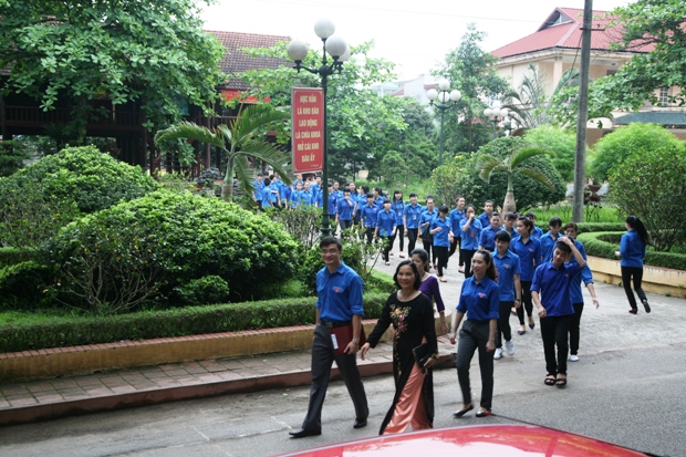 Rời nhà truyền thống, các bí thư chi đoàn nhanh chóng ổn định để chuẩn bị cho lễ kỷ niệm tại sân khấu nhà trường.