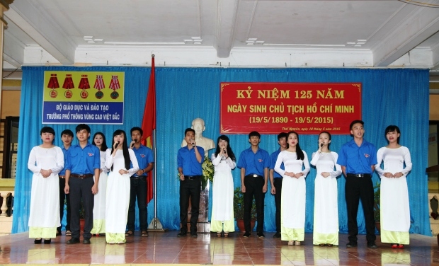 Trong không khí tưng bừng của cả nước kỷ niệm 125 năm ngày sinh vị Lãnh tụ vĩ đại của dân tộc, sáng ngày 18/5/2015, thực hiện sự chỉ đạo của Đảng ủy, BGH nhà trường, BCH Đoàn trường PT Vùng cao Việt Bắc phối hợp với phòng Công tác HSSV - AN và nhóm Lịch sử - tổ XH đã long trọng tổ chức chương trình kỷ niệm 125 năm ngày sinh chủ tịch Hồ Chí Minh (19/5/1890 - 19/5/2015).