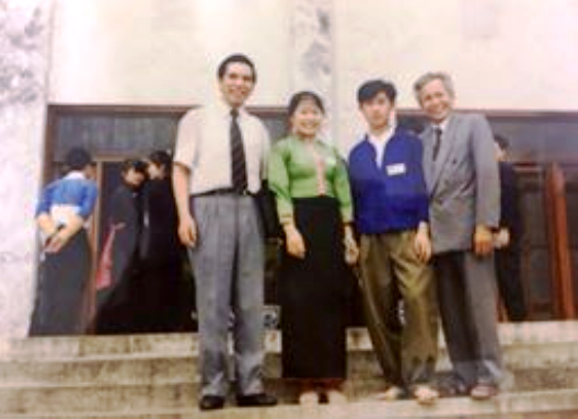 Ảnh: Vùi Văn Nghĩa chụp ảnh với Nguyên Chủ tịch Quốc hội Nông Đức Mạnh, NGND Nguyễn Văn Đào - Nguyên Hiệu trưởng nhà trường và Bạn Quàng Thị Thụy - Cựu học sinh K35GC dân tộc Thái -Tuần Giáo Lai Châu.