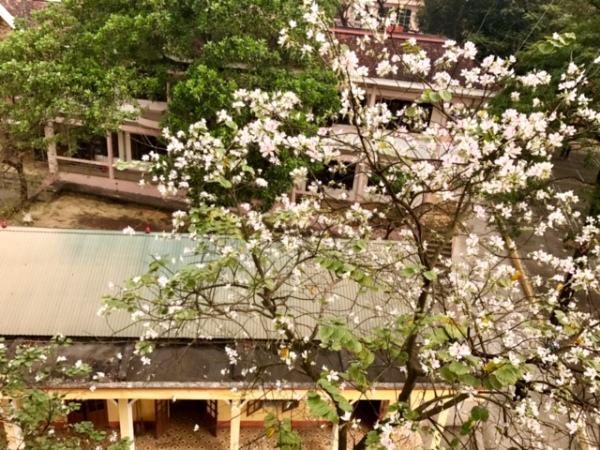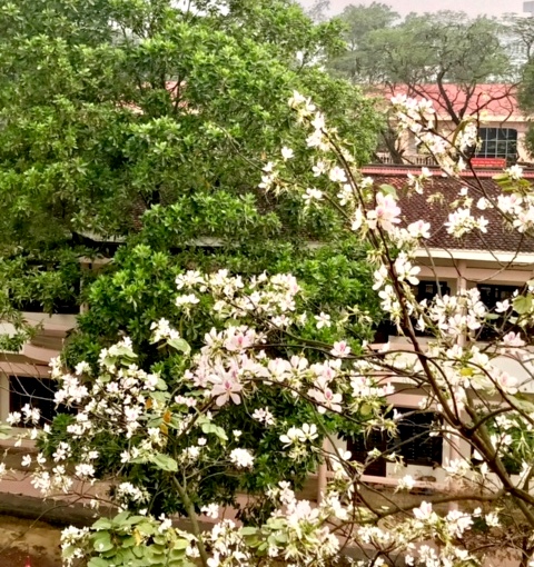 Đầu năm 2017, một lần vào trường, cùng đi với cô Lương Bích Huyền lên nhà Đa năng, vô tình cô Huyền chỉ tay về phía cây Ban và nói với tôi: “Cây Ban năm nay nở hoa đẹp lắm chị ạ”. Tôi nói như reo lên: “Vậy là cây Ban vẫn còn à?” Cứ ngỡ “Lời nói gió bay”, câu chuyện tôi kể trong Hội nghị chủ nhiệm đã rơi vào quên lãng! Vậy mà nhiều thầy cô không quên và NGND Đinh Thị Kim Phương - Nguyên Hiệu trưởng nhà trường dù bận trăm công ngàn việc thì vẫn nhớ! Trân trọng tấm lòng của cậu học trò chưa từng gặp mặt, khi xây dựng ngôi lớp học 4 tầng, cô Phương đã yêu cầu bên thi công phải đảm bảo giữ cho cây Ban một không gian để sinh tồn và phát triển. Mừng quá tôi liền ghi hình rồi đăng lên thông báo với học trò. Mọi người chia vui với tôi, cô giáo Vũ Thị Thu còn gửi cho tôi mấy tấm hình hoa Ban.
