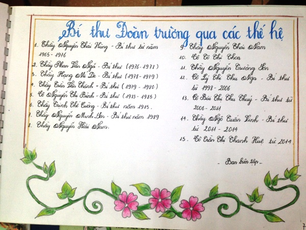 Dòng chữ “Thi đua lập thành tích chào mừng 33 năm ngày nhà giáo Việt Nam 20/11” cùng huy hiệu Đoàn góc bên trái luôn được trình bày nổi bật với tiêu đề tập san.