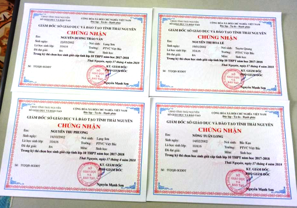 Hai bạn có thành tích học tập xuất sắc vượt bậc hơn cả là bạn Nông Tuấn Long với điểm số trung bình là 9.2, huy chương Bạc cuộc thi HSG Duyên hải và Đồng bằng Bắc Bộ, giải Nhì HSG cấp tỉnh môn Sinh học. Bạn Vương Thời Công với điểm số trung bình là 9.1, huy chương Đồng thi HSG Duyên hải và ĐB Bắc Bộ, giải Nhì HSG cấp tỉnh môn Hóa học.