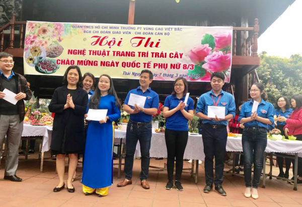 Tháng 3 - Tháng Thanh niên - Tháng của những trái tim đong đầy sức trẻ. Và tháng 3 thêm ý nghĩa hơn nhân dịp kỉ niệm 109 năm ngày Quốc tế phụ nữ 8/3, chiều ngày 7/3/2019, tại sân Nhà truyền thống, BCH Đoàn trường PT Vùng cao Việt Bắc đã tổ chức “Hội thi Nghệ thuật trang trí trái cây” với đối tượng tham gia là đoàn viên chi đoàn Cán bộ, chi đoàn Giáo viên và chi đoàn Giáo sinh thực tập.