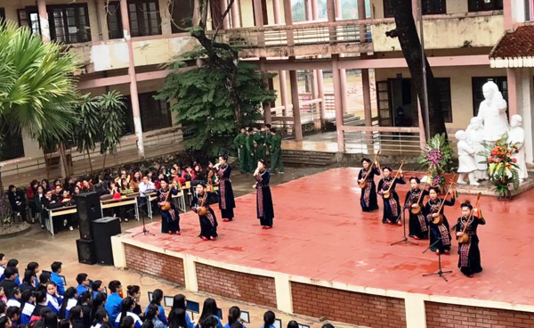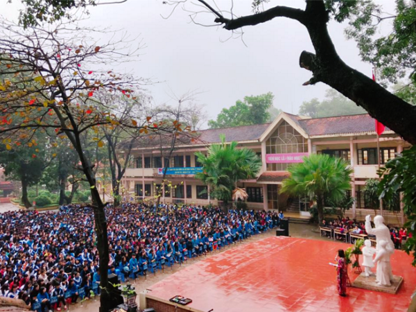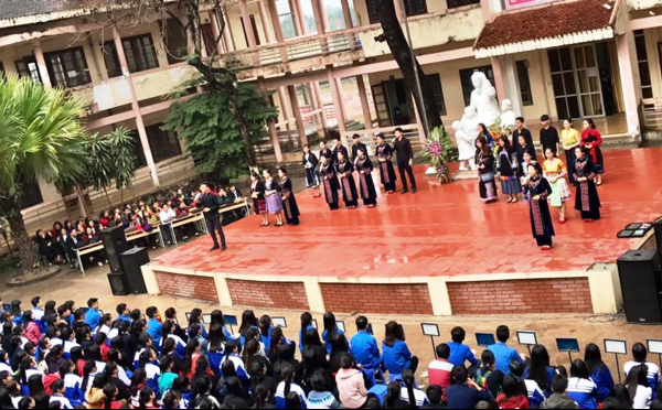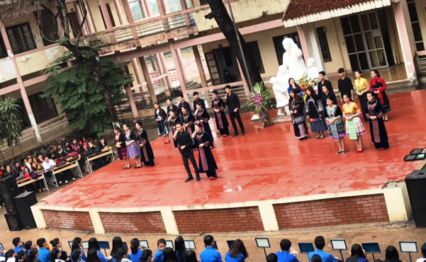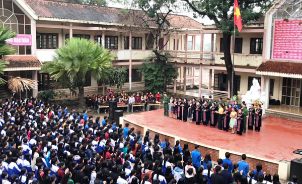 Thay mặt cho tuổi trẻ nhà trường - em Đinh Thị Mỹ Linh - Đoàn viên chi đoàn 11A10 - đạt giải Ba Học sinh giỏi quốc gia vượt cấp môn Ngữ văn đã bày tỏ sự xúc động và niềm tự hào khi được học tập tại mái trường giàu truyền thống với bề dày thành tích, đồng thời hứa quyết tâm sẽ thực hiện tốt lời Bác dạy phấn đấu trở thành những con ngoan, trò giỏi để sau này trở thành công dân tốt trở về xây dựng bản làng, quê hương.