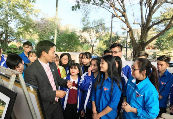 Tại buổi triển lãm, đồng chí Trần Vũ Thành - Chủ nhiệm câu lạc bộ Tuổi trẻ vì biển đảo quê hương đã giới thiệu về câu lạc bộ, ý nghĩa của hoạt động triển lãm cùng những hoạt động của câu lạc bộ đang thực hiện trên khắp cả nước. Đồng chí cùng các thành viên trong câu lạc bộ đã trao tặng nhà trường bức tranh kỷ niệm về Trường Sa.