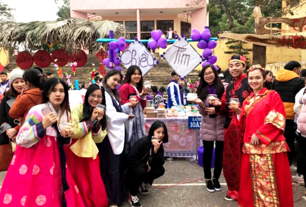 Tại sân trường - nơi diễn ra “Hội chợ Tết Vùng cao”, các bạn học sinh đang tấp nập, mải miết chuẩn bị các mặt hàng để trang trí, trưng bày những đặc sản tại gian hàng của lớp mình, tất cả mọi nơi trong khuôn viên trường đều đông kín người qua lại, tôi cũng hòa mình vào sự nhộn nhịp đó, cùng lớp trang trí và bày đồ để mở gian hàng khai trương hội chợ.