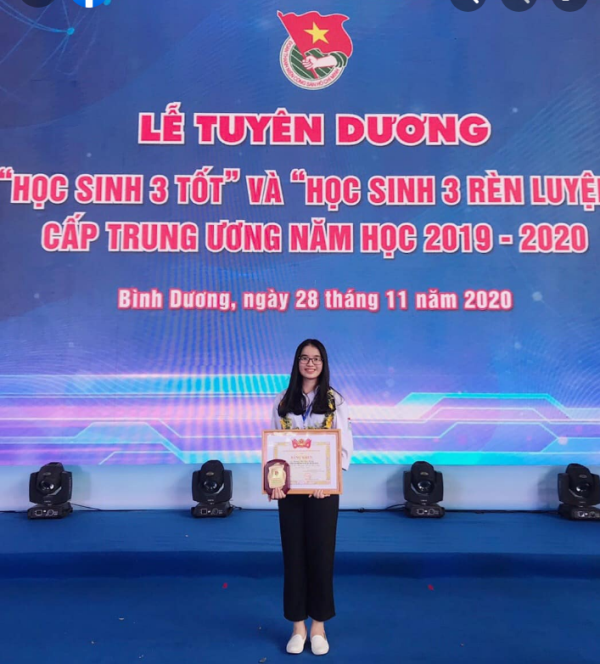 >> Giải Ba kỳ thi chọn HSG lớp 12 môn Tiếng Anh, đạt danh hiệu “Học sinh 3 tốt” cấp Trung Ương năm 2020 và 3 năm học liên tiếp là học sinh giỏi xuất sắc với điểm tổng kết trên 9,0.