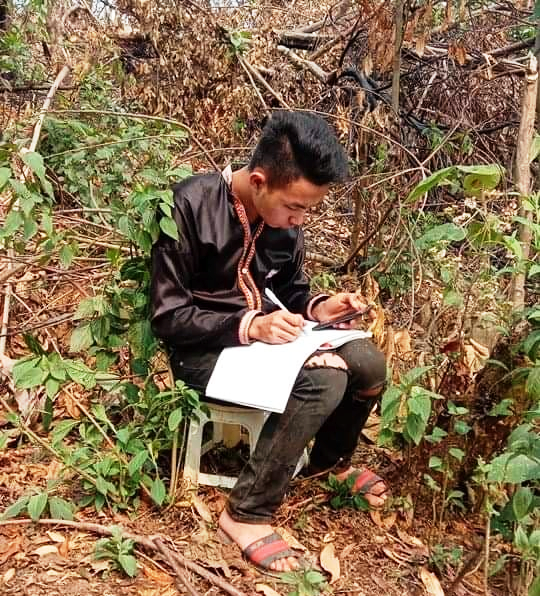 Hiện tại bạn đang sinh sống tại thôn Kháo Chu - xã Bản Công - huyện Trạm Tấu - tỉnh Yên Bái cũng đang tranh thủ học bài.