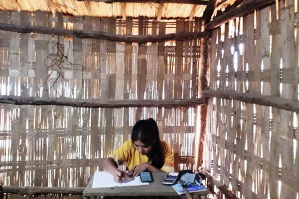 Bạn Vàng Thị Xa đang tranh thủ học bài