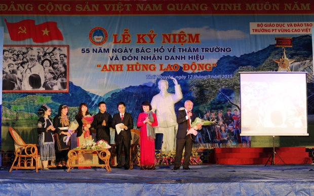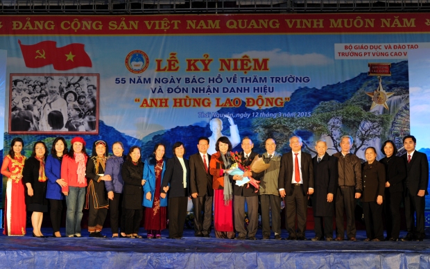 Được sự nhất trí của Đảng ủy, Ban giám hiệu, 19h30’ ngày 11/03/2015 Đoàn TNCS Hồ Chí Minh trường PT Vùng cao Việt Bắc đã long trọng tổ chức “Đêm giao lưu gặp gỡ các thế hệ cán bộ, giáo viên, học sinh nhân kỉ niệm 55 năm ngày Bác Hồ về thăm trường (13/3/1960 - 13/3/2015) và đón nhận danh hiệu Anh hùng Lao động.