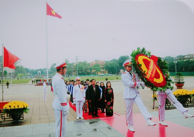 Sau buổi lễ chào cờ, lễ Báo công diễn ra trước cửa lăng. Mọi vật đều trang nghiêm. Hình như gió cũng ngừng thổi để lắng nghe kết quả phấn đấu của nhà tường. Trước anh linh của Bác, cô hiệu trưởng đã trịnh trọng báo cáo mọi hoạt động của nhà trường trong 60 năm qua cả về ưu điểm và nhược điểm, những thành tích và hạn chế của nhà trường. Sau đó, đoàn vào viếng Bác. Bác vẫn nằm đó, với khuôn mặt nhân từ, giống như Y Phương đã từng viết: “Bác nằm trong lăng giấc ngủ bình yên, giữa một vầng trăng sáng trong dịu hiền”. Tuy trời không có nắng nhưng hình như có một mặt trời toả ánh hào quang sáng lắm. Ngày hôm nay, sao đẹp đến lạ thường!