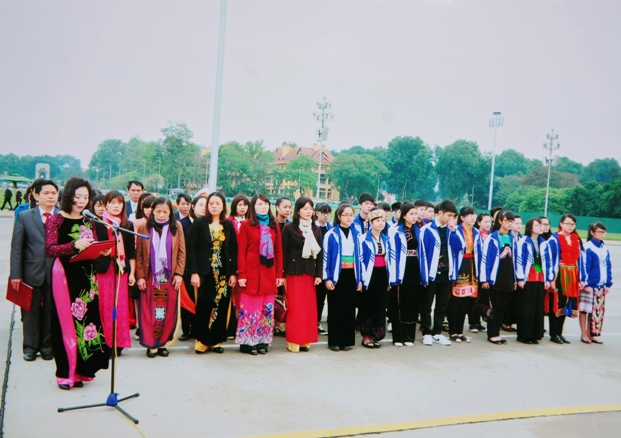 Quay ngược thời gian, trở lại ngày 13 tháng 3 của 60 năm trước đây, tôi thấy thật thiêng liêng và cao quý, Bác Hồ đã đặt chân tới thăm trường Phổ thông Vùng cao Việt Bắc, lúc ấy là trường Thiếu nhi rẻo cao khu tự trị Việt Bắc. Bắt đầu từ ngày ấy, Trường PT Vùng cao Việt Bắc đã rộ lên phong trào thi đua học tập và lao động một cách sôi nổi. Tiếp thu những lời dạy của Người, nhà trường đã không ngừng phấn đấu và đạt được nhiều thành tích đáng quý. Chính vì vậy mà hôm nay, Đoàn trường PT Vùng cao Việt Bắc đã tổ chức lễ Báo công với Bác tại Quảng trường Ba Đình - Hà Nội.